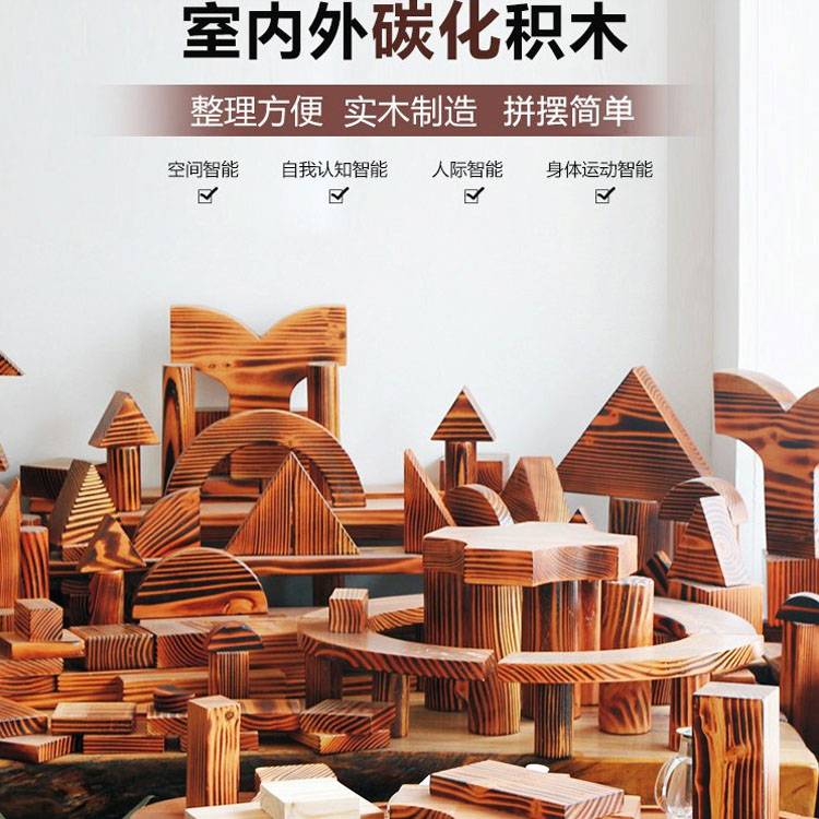 幼儿园户外大型碳化积木 木制玩具 构建区炭烧 鑫圣美