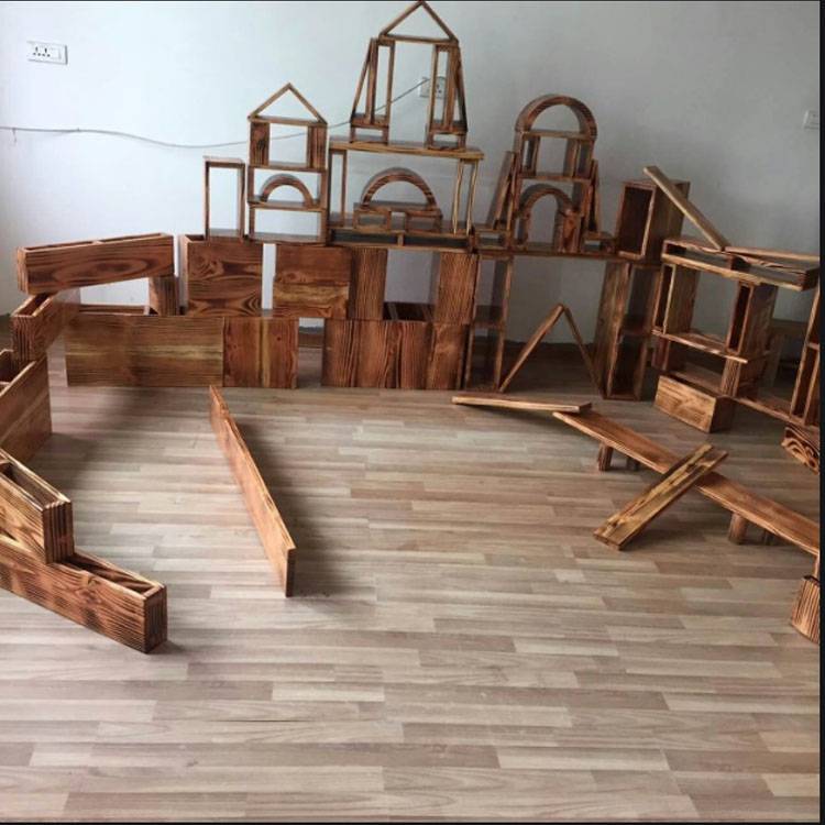 幼儿园室内外大型中空炭烧建构区碳化积木 儿童创意木制拼搭玩具