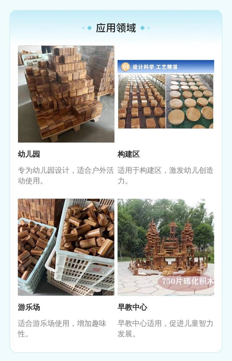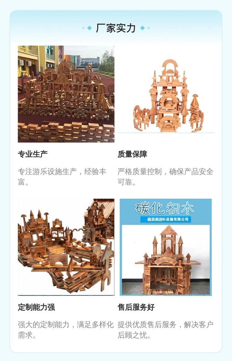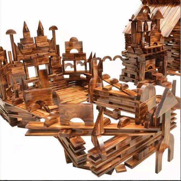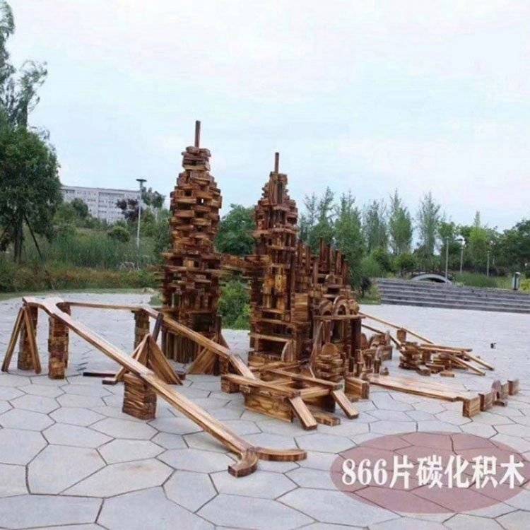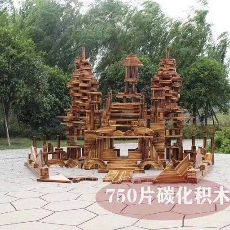 幼儿园户外大型碳化积木 木制玩具 构建区炭烧 鑫圣美